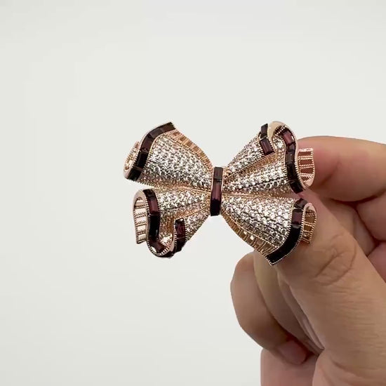 This elegant French bow brooch is crafted from copper and sparkling zircon to add refined sparkle to coats, dresses and suits. Lightweight and handmade, it fastens securely and sits flat for comfortable all-day wear. Arrives in a gift box, making it an effortless present for birthdays, weddings or special occasions. Each piece may vary slightly due to natural materials, giving a unique character to every brooch.