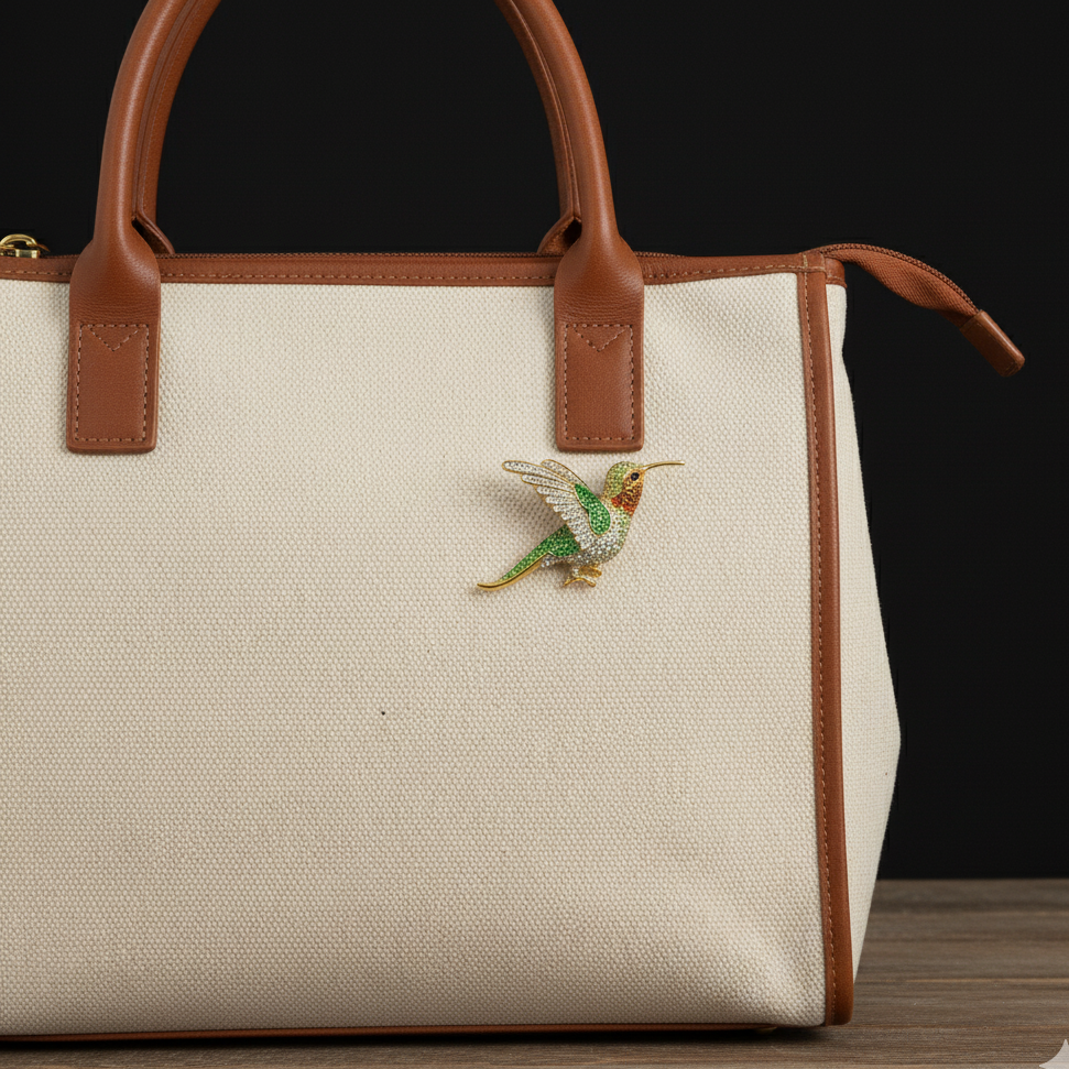 Sparkling rhinestones set on copper form a detailed 3D hummingbird brooch that adds vintage elegance to coats, dresses and scarves. Two size options (approx. 50 × 73 mm and 45 × 74 mm) give a bold or more delicate statement, each secured with a sturdy pin for confident wear. Handmade construction ensures careful craftsmanship and lasting sparkle, presented in a neat gift box for easy giving. Dispatched from China with returns accepted within 30 days.