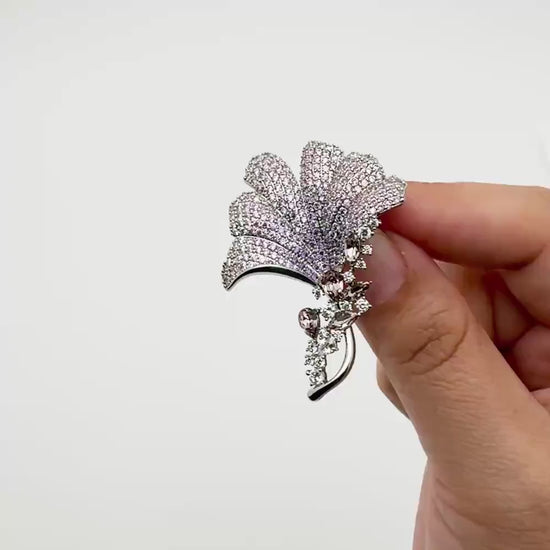 A detailed 3D ginkgo leaf brooch crafted from copper with sparkling zircon accents for elegant sparkle. At 51 mm by 39 mm and weighing approximately 12 g it pins securely to jackets, dresses or evening gowns without weighing fabric down. Each piece is handmade so slight variations in colour and texture make every brooch unique and ideal as a thoughtful gift with a provided gift box. Durable plating and a secure clasp ensure long-lasting wear and easy styling for events or everyday outfits.