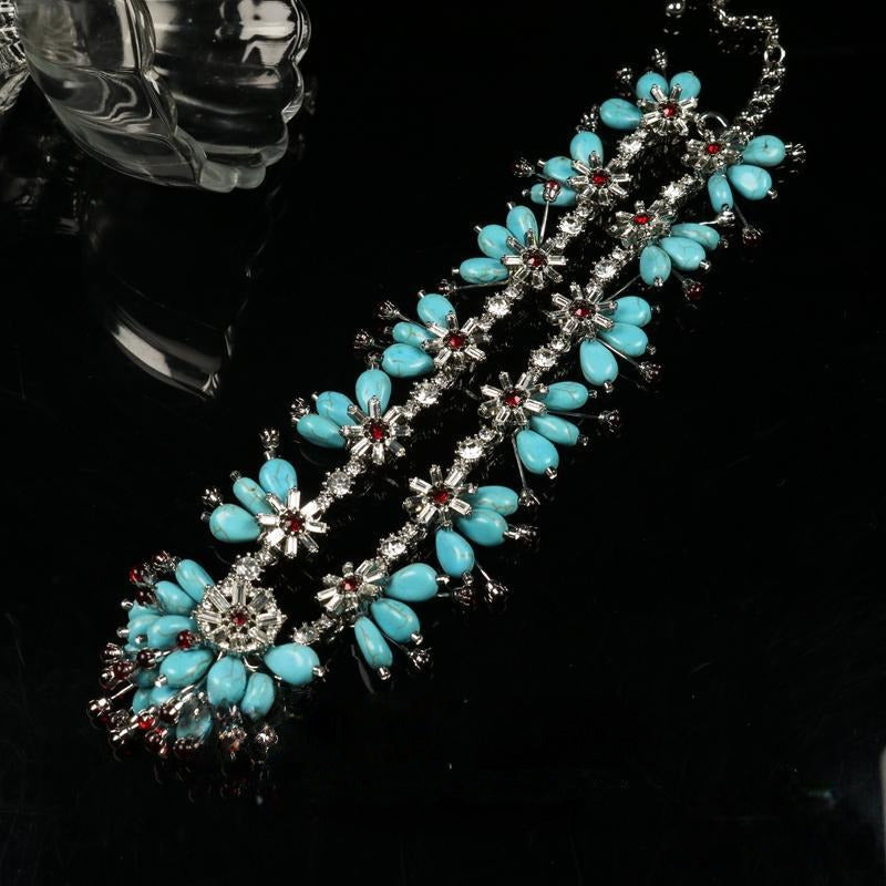 Add a touch of fresh and sweet elegance with this handcrafted turquoise glass flower jewelry set. Featuring botanical motifs, this set includes a brooch, earrings, and a necklace, perfect for daily wear, parties, or as a thoughtful gift.