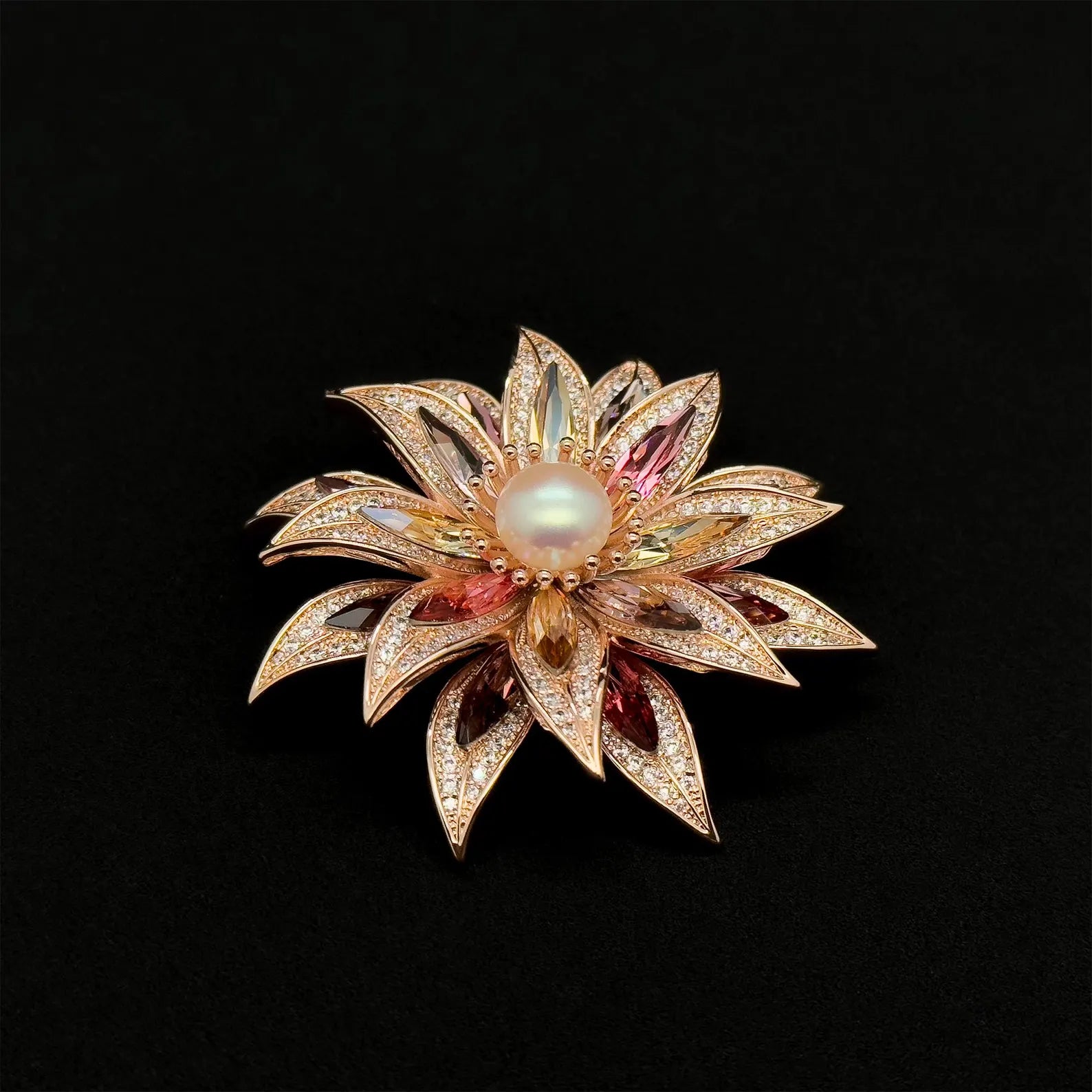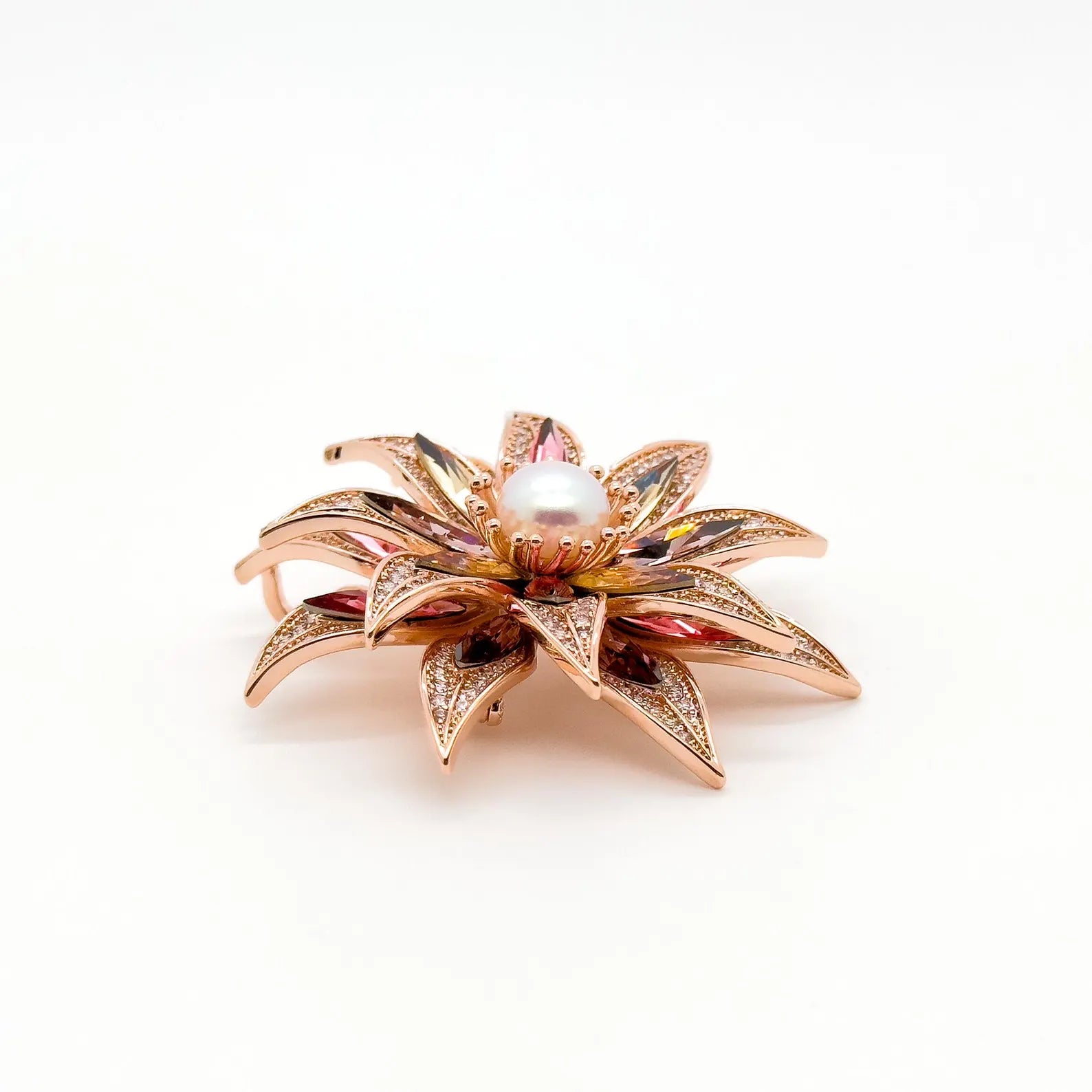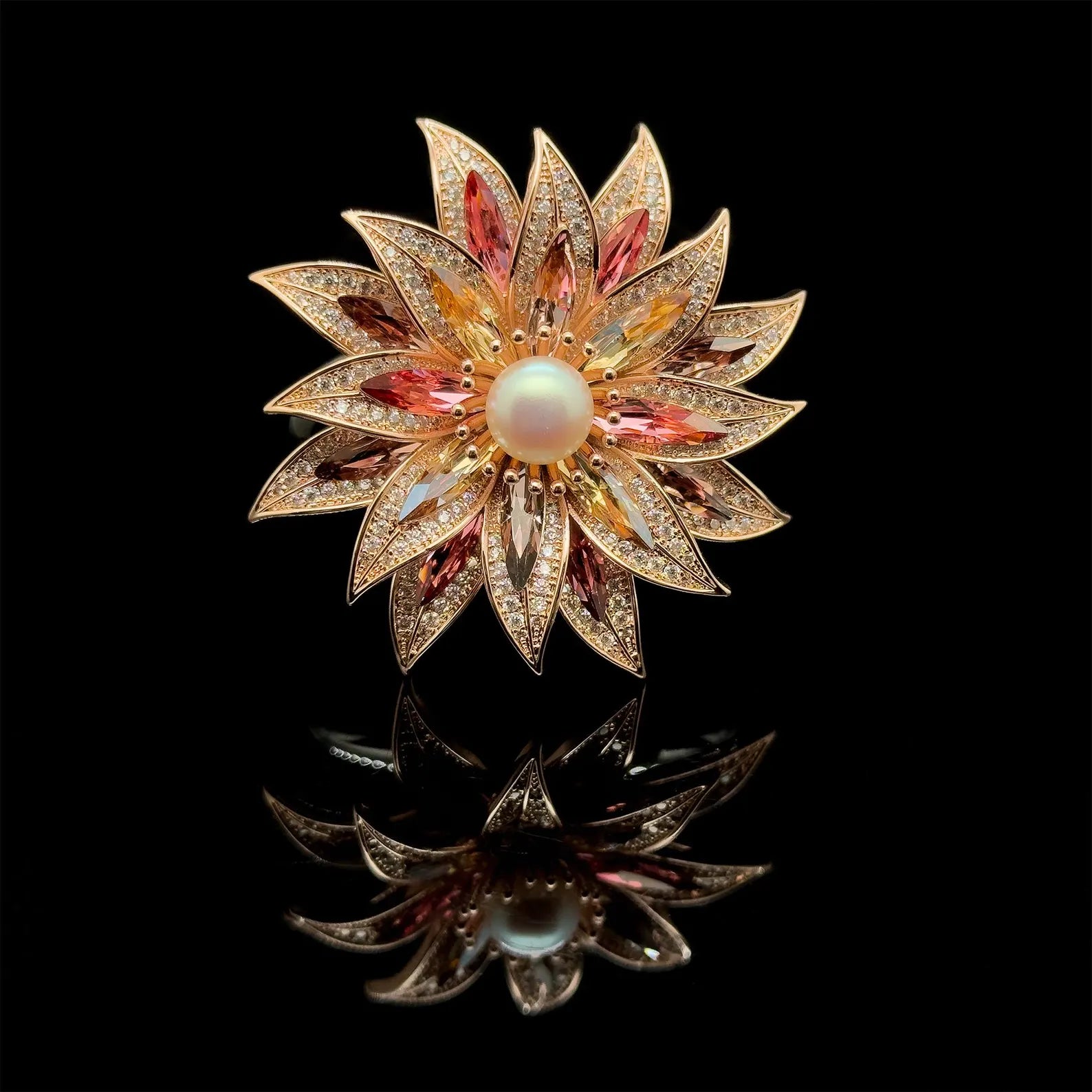 Vintage Art Deco Sunflower Floral Crystal Brooch