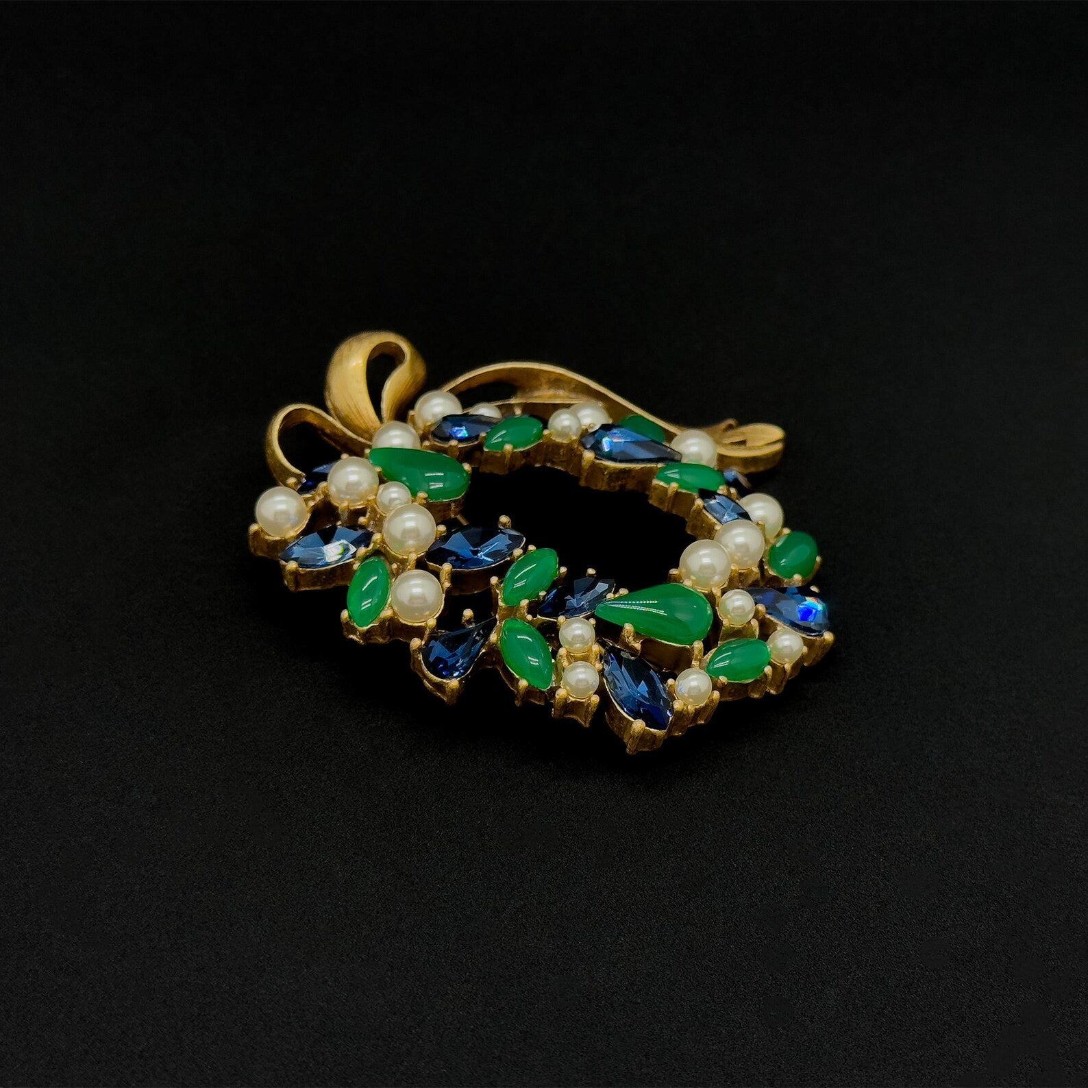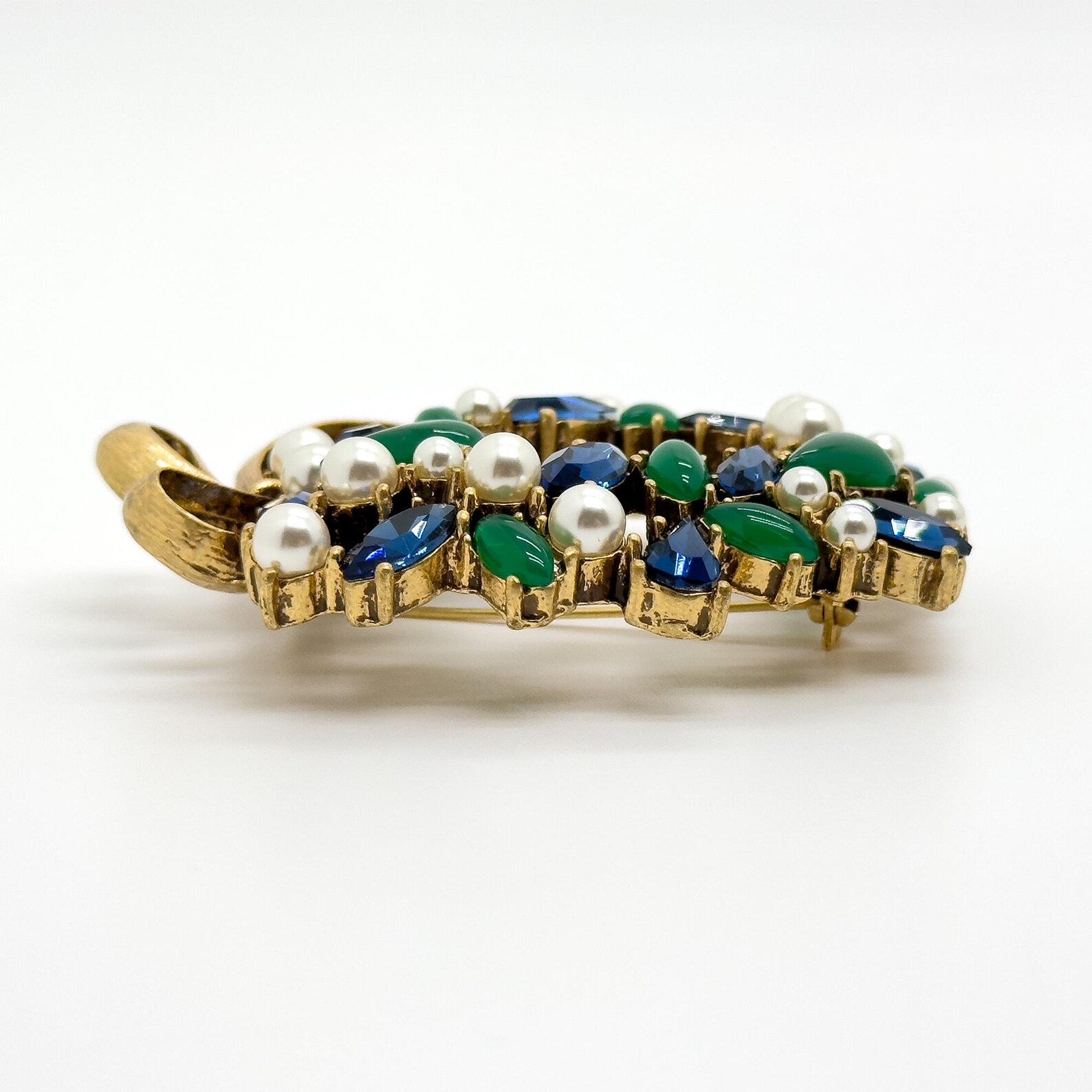 Bring elegance and artistry to your style with this handcrafted Art Deco brooch, featuring a stunning combination of glass and pearls set in copper.