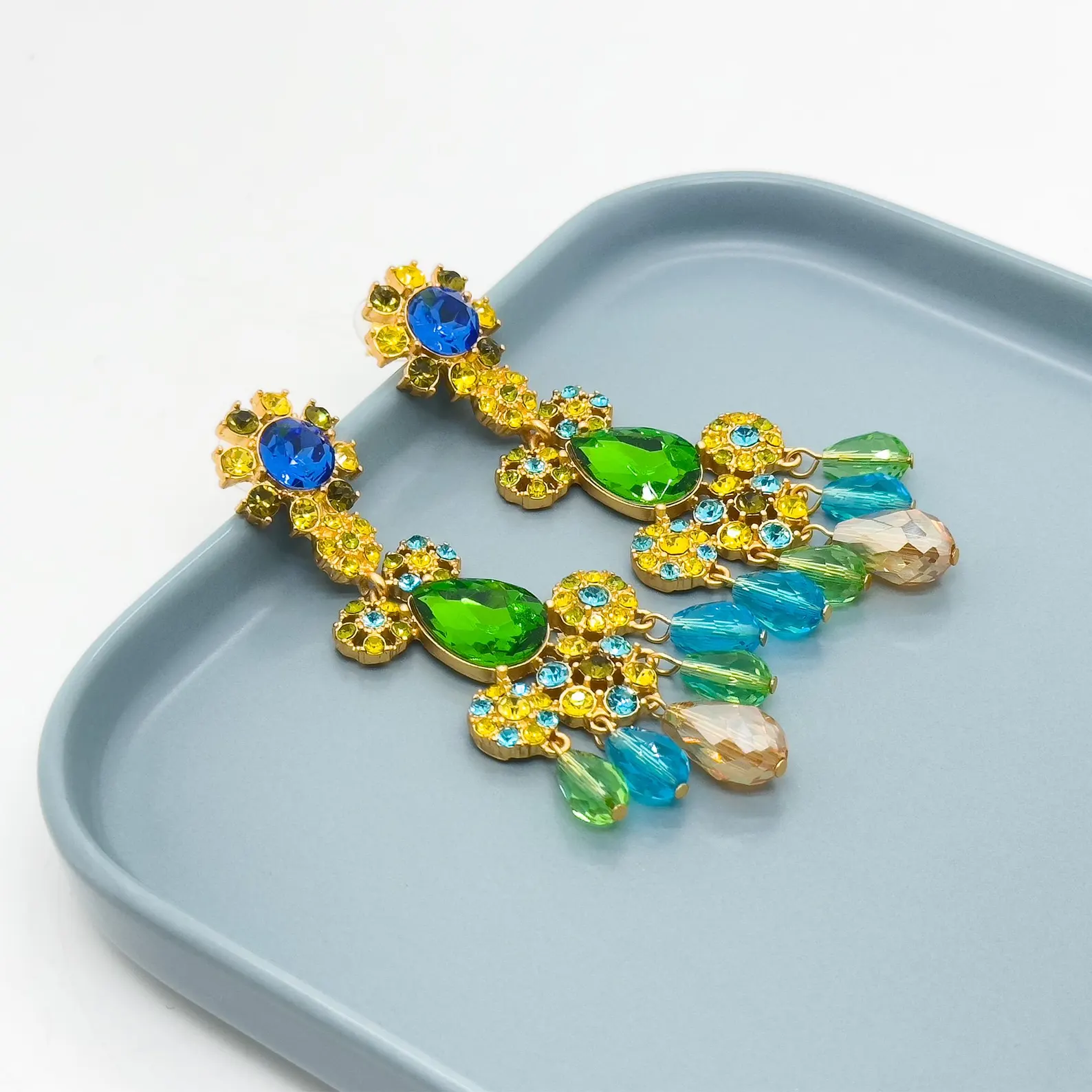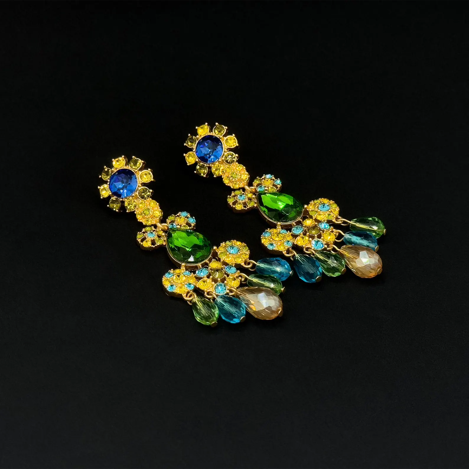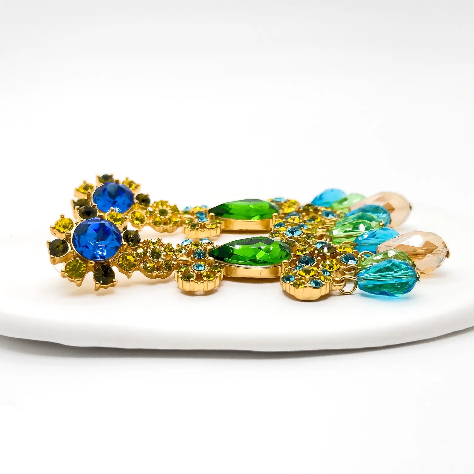 Bring elegance and artistry to your style with these handcrafted Art Deco earrings, featuring a stunning combination of crystal and glass set in gold-plated copper with 925 silver ear posts.