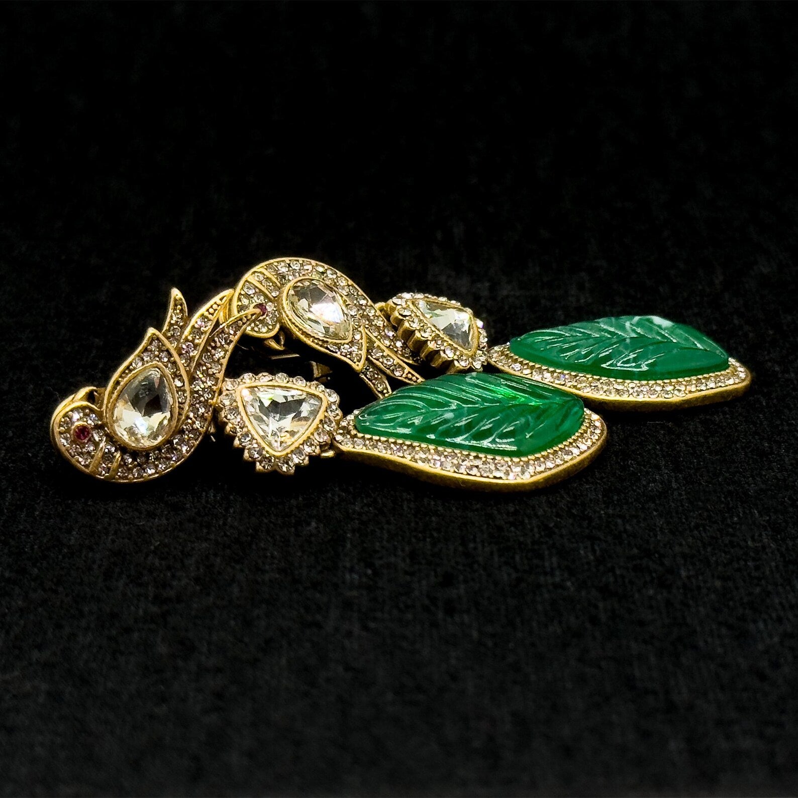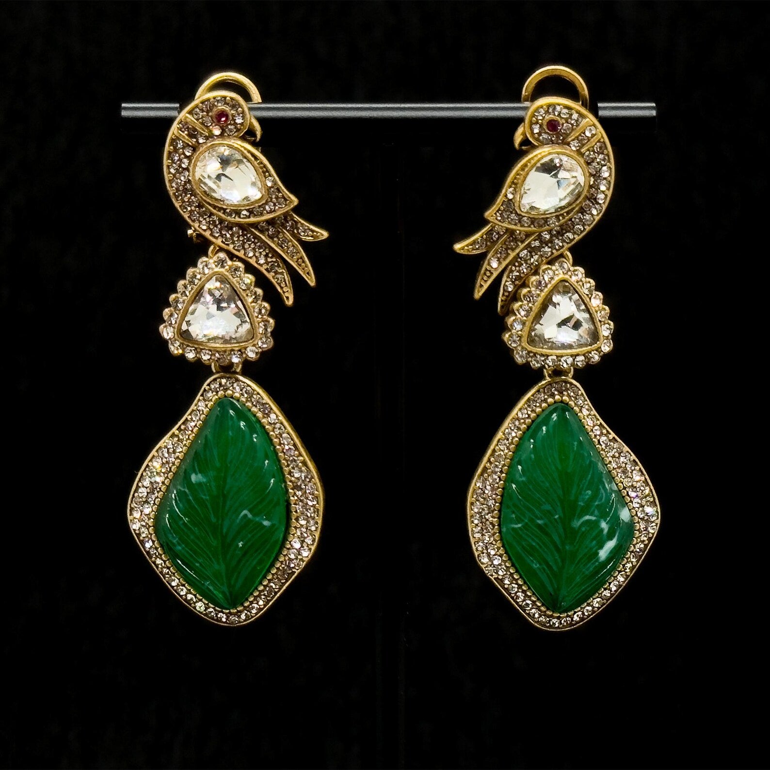 Vintage Ethnic Green Enamel Bird Earrings