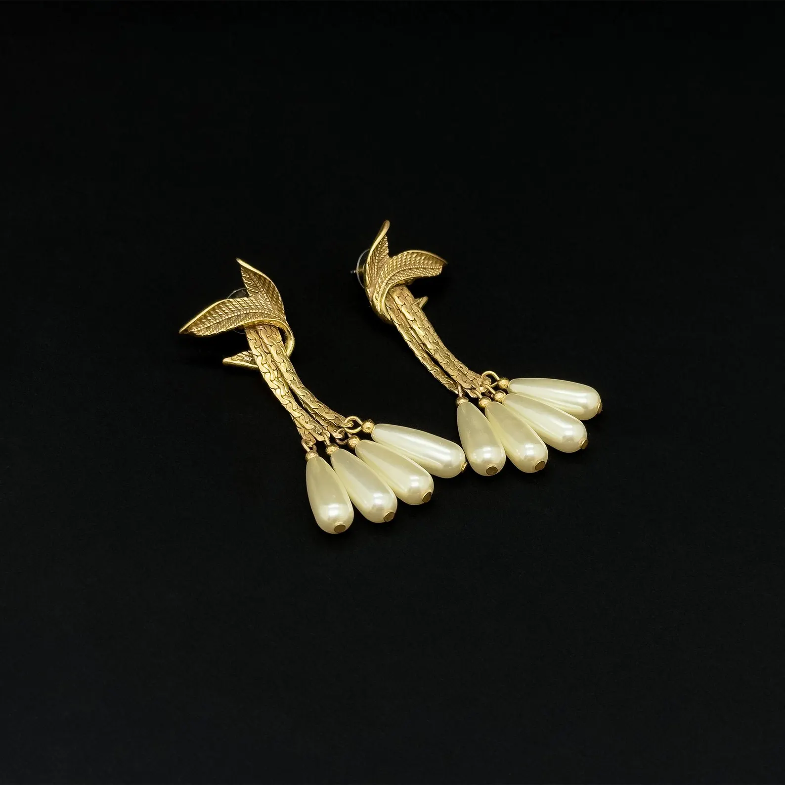 Vintage Leaf Fringe Brooch & Earring Set