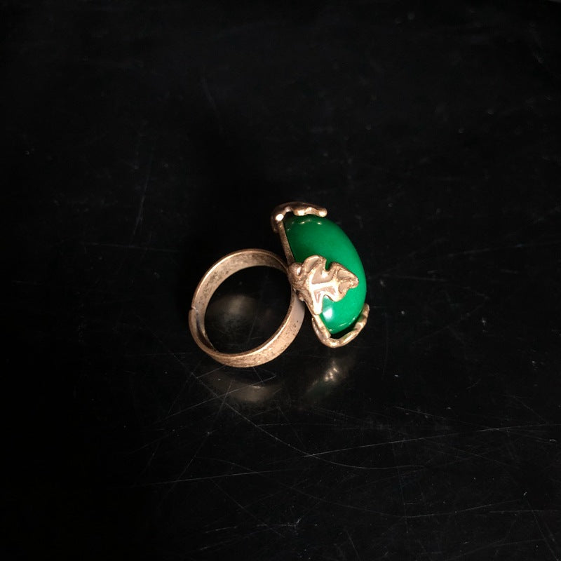 Add a touch of vintage royal elegance to your look with this handcrafted green agate and copper jewelry set. Featuring a necklace, bracelet, ring, and stud earrings, this set is perfect for elevating both casual and formal outfits. An exquisite gift for birthdays, parties, weddings, or special occasions.
